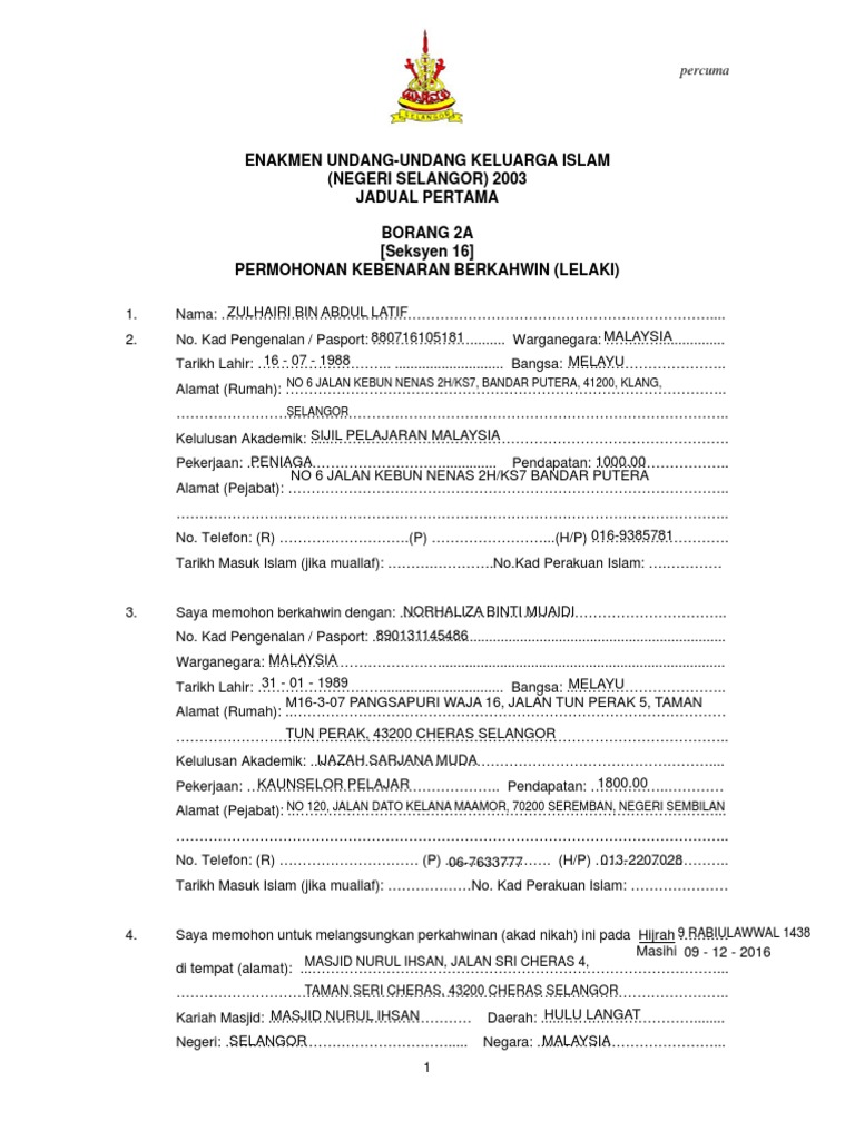 2a Borang Permohonan Berkahwin Pdf